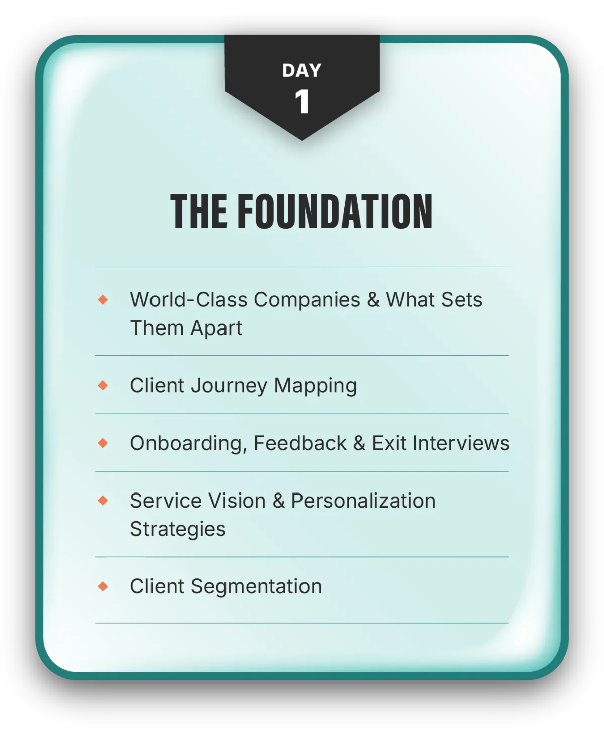 Create your Service Vision, define your client segmentation strategy, and learn how to personalize at scale without burning out your team.