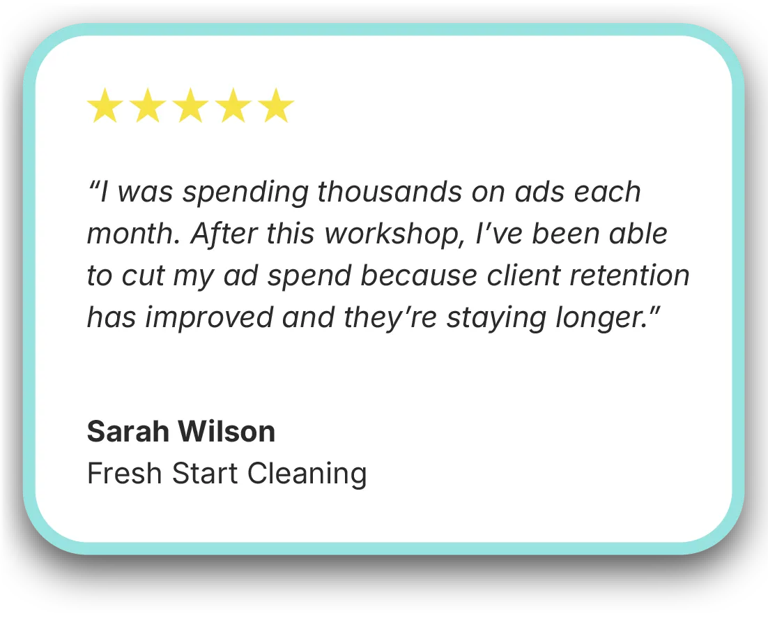 Yes—this workshop is specifically designed for residential and commercial cleaning business owners, managers, and client care teams. Every strategy, tool, and example is tailored to the unique challenges of the cleaning industry.